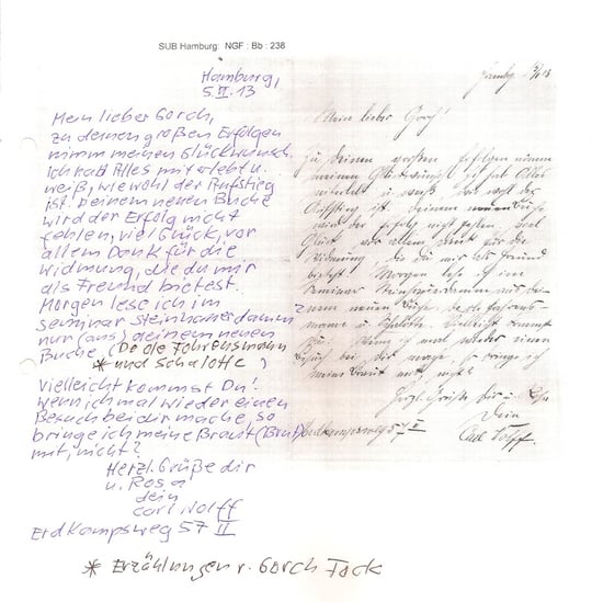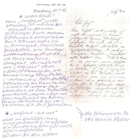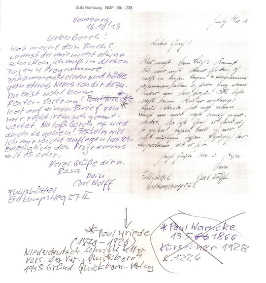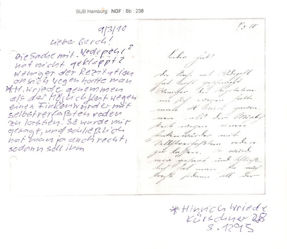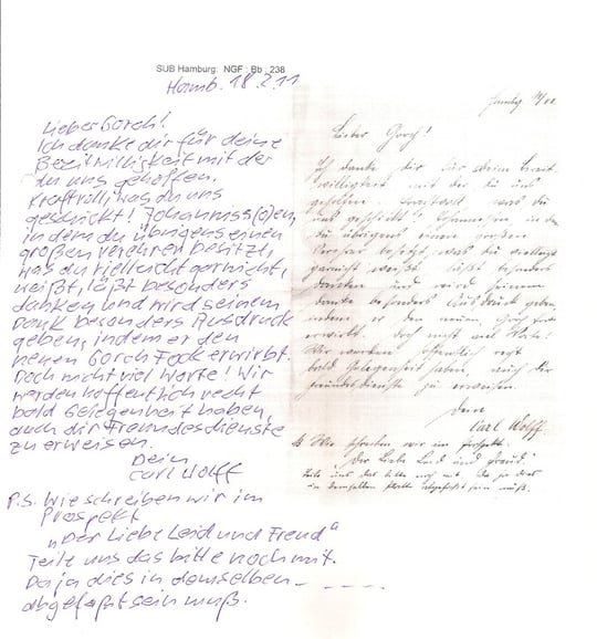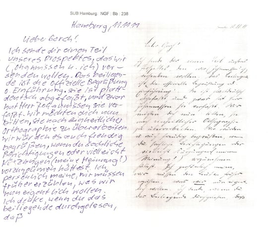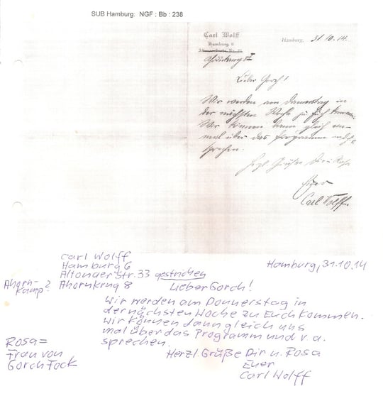 Briefwechsel im Internet einzustellen.Einen ganz herzlichen Dank diesbezüglich an Herrn Dr. Mark Emanuel Amtstätter für die Freigabe,da ja die Urheberrechte abgelaufen sind.Nichtsdestotrotz ist auf jedem Brief der Archivvermerk der SUB Hamburg sichtbar.