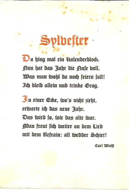 Hier noch ein Autograph von Carl Wolff aus dem Jahre 1933 in Form einer Silvesterglückwunschkarte mit einem Gedicht von ihm an seine Tochter Else Krug geb.Wolff.