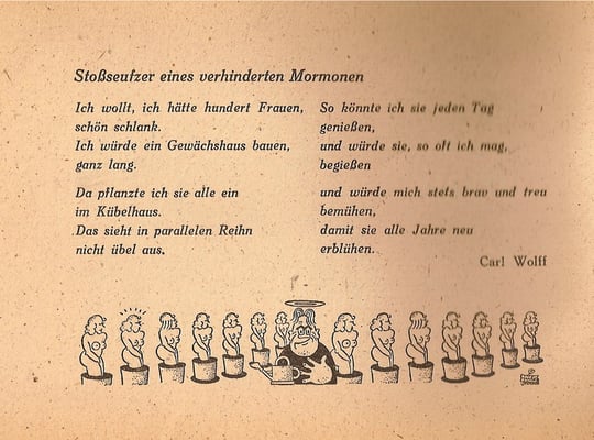 von ihm abgedruckt und das Gedicht -Stoßseufzer eines Mormonen-,das unter anderem Titel -Das Gewächshaus-bereits im Gedichtband-Niederschläge- abgedruckt ist.