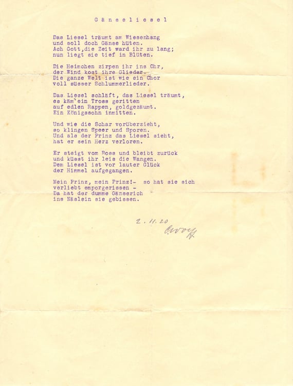 Durch Herrn Lüttke wurde mir dankenswerterweise ein bisher nicht veröffentlichter Autograph eines Gedichts von CW zur Verfügung gestellt,sowie ein Zeitungsausschnitt.