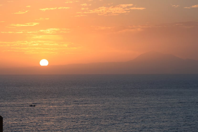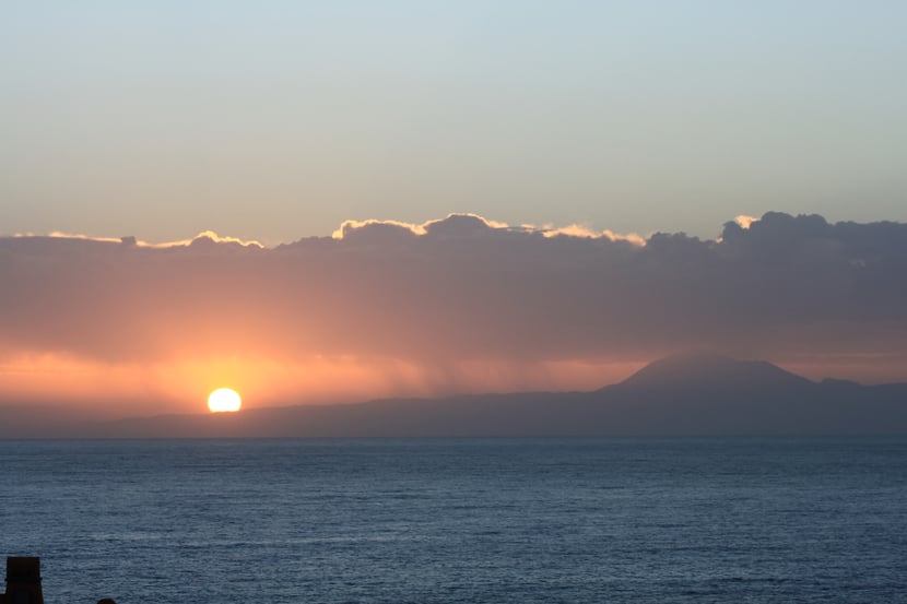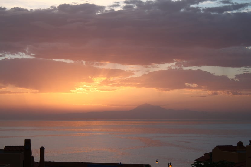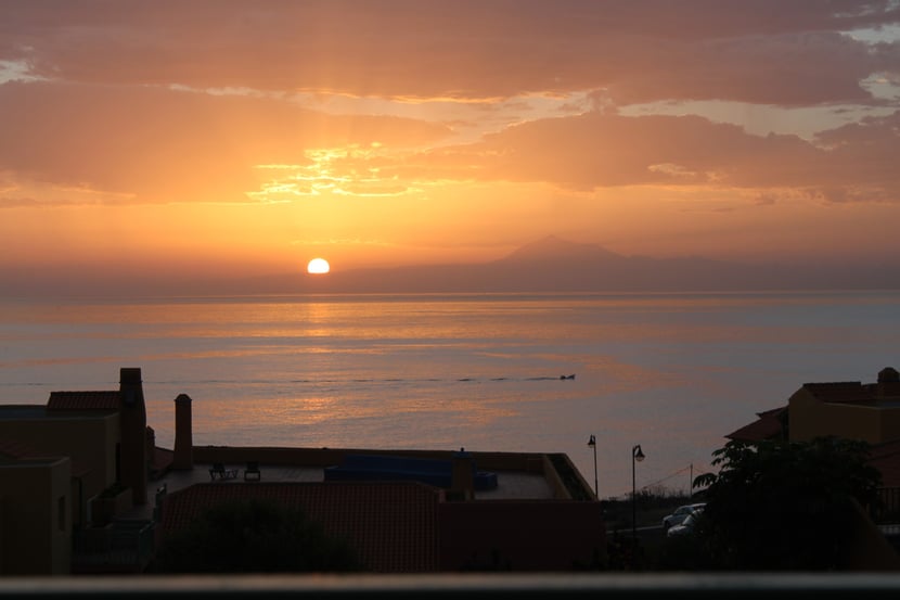 Jeden Morgen hatten wir von unserem Balkon einen phantastischen Blick zur Ostseite in Richtung der Insel Teneriffa mit dem höchsten Berg Spaniens dem Pico de Teide.