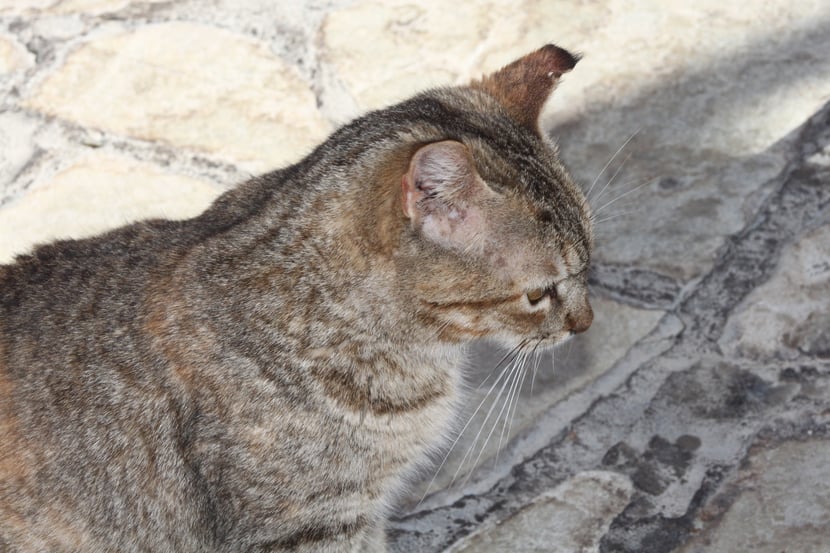 Glücklicherweise hatten wir noch etwas Futter für ihn dabei, er war sehr scheu und blieb immer auf Distanz, hat aber das Futter gerochen und schnell gefressen. Am liebsten hätten wir ihn mit ins Auto genommen und in ein Tierheim gebracht. Er ließ aber keinen an sich heran.