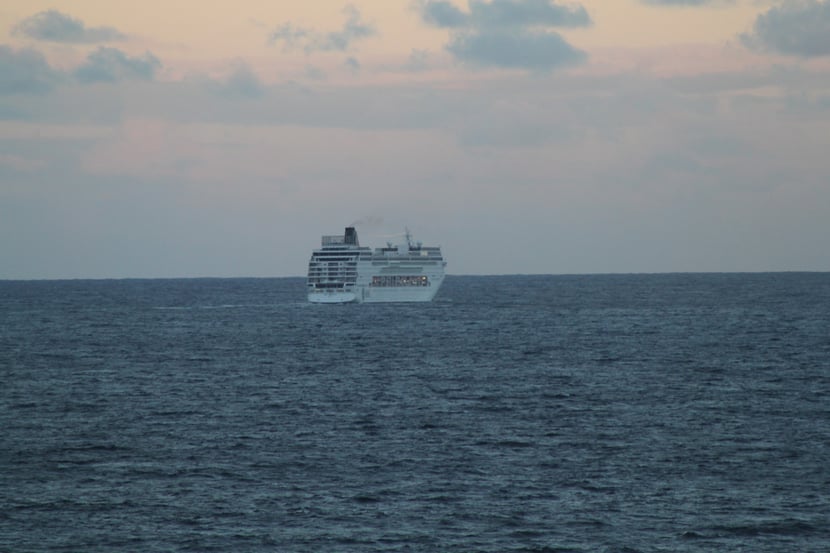 Die Sonne geht unter in den Wolkenbänken am El Pilar.