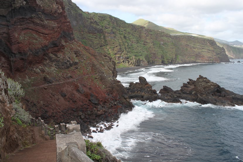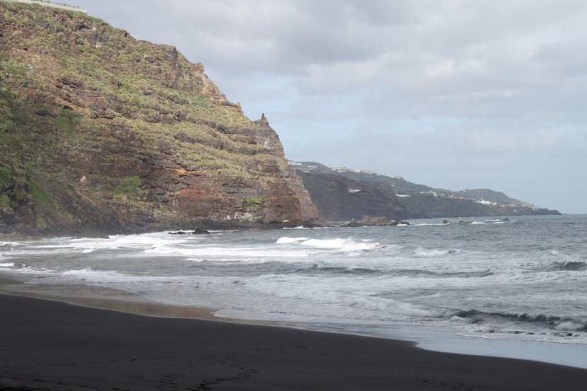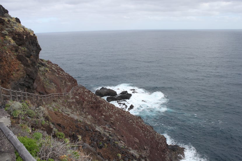 Playa de Nogales unterhalb von Puntallana an der Ostküste, ein ganz einsamer, aber sehr gefährlicher Strand. Wegen der Unterströmungen sollte man dort nicht schwimmen gehen.