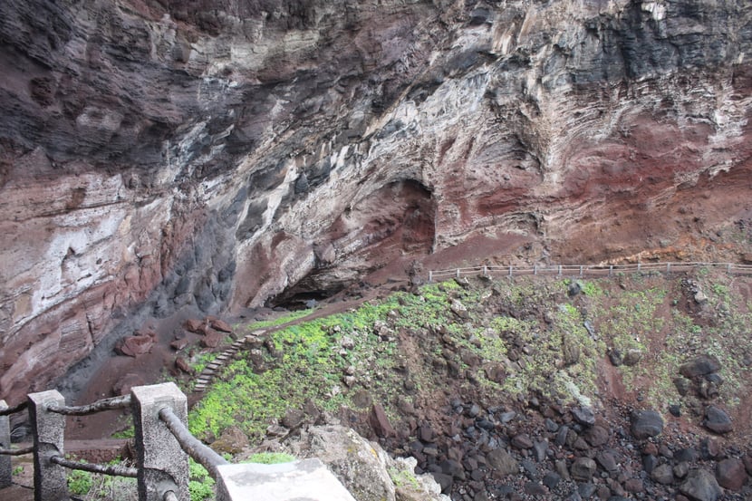 Der Eingang zur Infernohöhle. Hier gelangt man frei Jules Verne zum Mittelpunkt der Erde, ha,ha. Um Gottes Willen nicht herabsteigen. Es könnte ein Abstieg ohne Widerkehr sein.