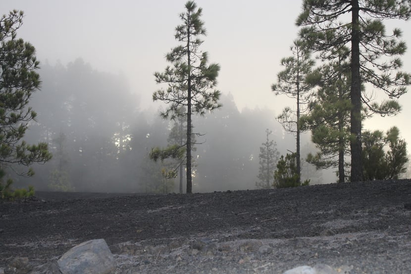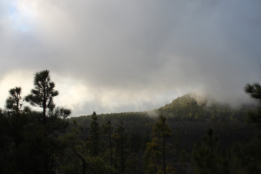 In den Wolken versunken liegt der Wald. Ganz normal auf La Palma, da die Wolkengrenze meistens bei 1000-1500 m liegt. Hier sind wir über 1000 m Höhe.