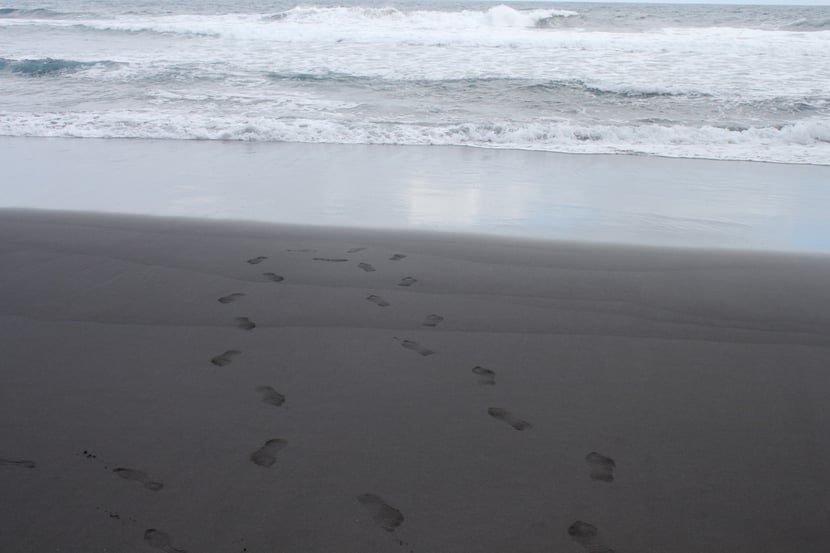 Spuren im Sand, bin mal kurz im Meer verschwunden.