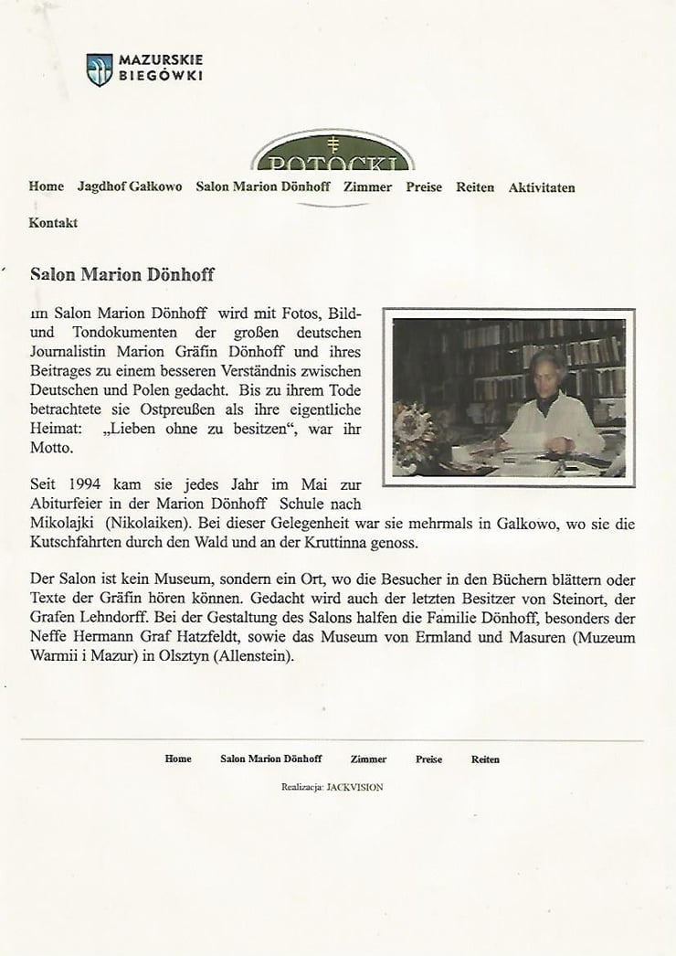 Im Gedenken an die Gräfin Dönhoff ist im Ortsteil Galkowo auf dem Jagdhof ein Gedenksalon eingerichtet wurden. Zu Lebzeiten hat die Gräfin den Jagdhof auch mehrfach besucht.